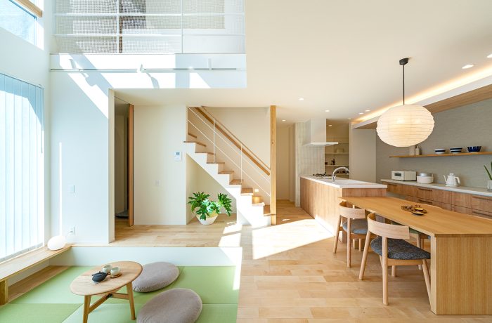 上品で穏やかな印象のお家。 畳リビングは開放的な吹き抜けを取り入れ、家族団欒の時間をより特別なものに。家事の移動がスムーズになる回遊動線を取り入れた間取りなど、暮らし心地の良い住まいが完成しました。