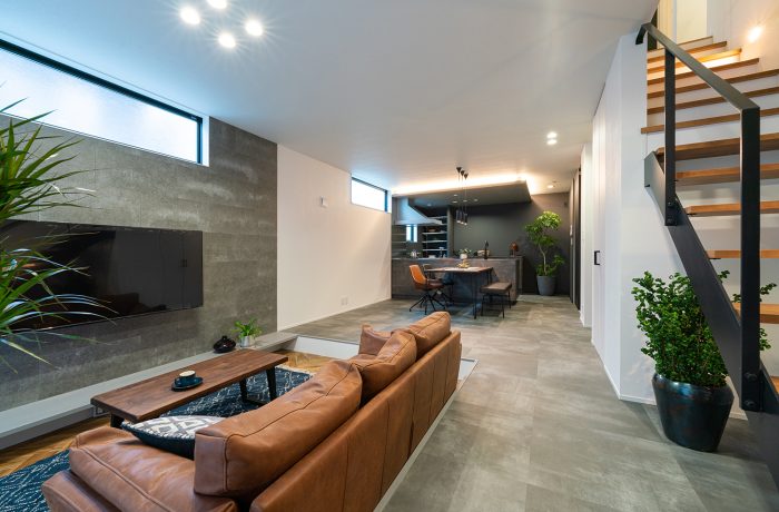 グレーを基調とした室内は、板張りの天井や無垢の床という天然木を組み合わせて抜け感あるおしゃれなコーディネートに。毎日を楽しく過ごせるデザインと、ご家族が安心して住み続けられる性能にこだわった住まいが完成しました。