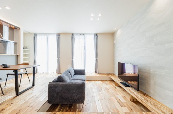 『実家を建てたい。』という想いから、家族や親戚が集まってもゆとりある空間で楽しく過ごせる設計に。 お施主様とご家族様、そして住家との縁で完成した団欒を楽しめる住まいになりました。