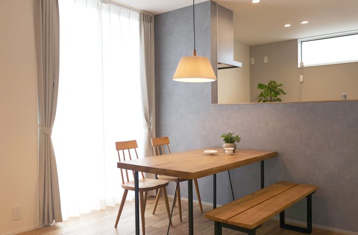 白やベージュ、グレーといった中間色に温かみを感じられる無垢材の組み合わせで、落ち着きある雰囲気にまとめられた住まいになりました。