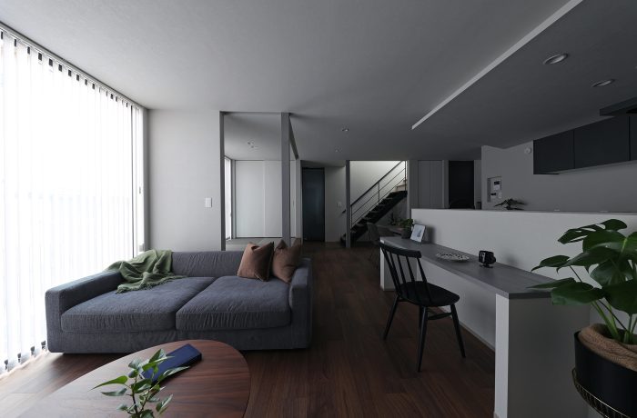 忙しい毎日を過ごす、共働きご夫婦が建てた家事楽設計と、家づくりの中でやりたいことリストにあった生活空間+2の間取り。 ご家族”らしい”個性を主張した無骨なカッコよさのある無機質な質感で揃えた空間コーディネートも見どころ。
