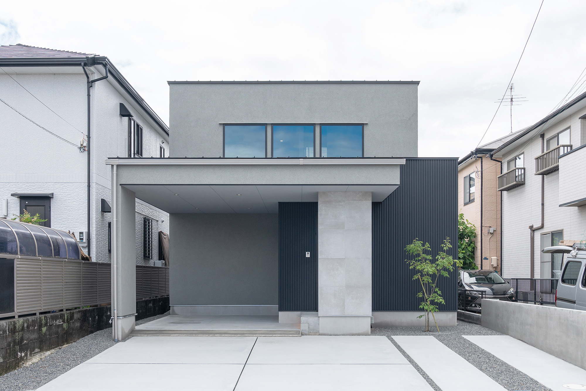 住宅街の中、ひときわ目を惹く洗練されたデザインの外観。